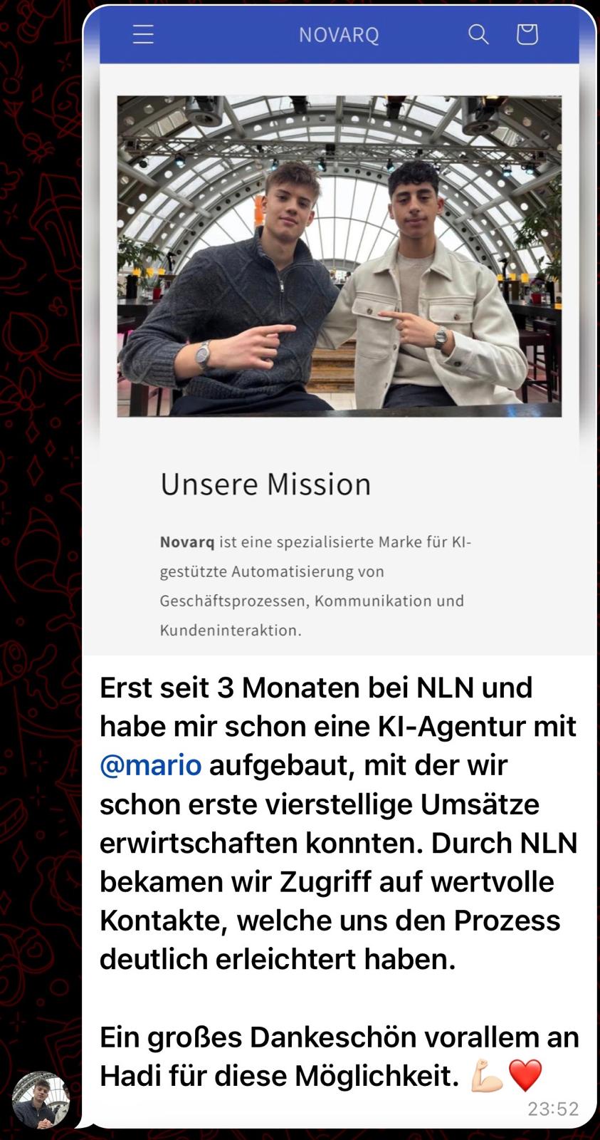 Es gibt keinen festen Zeitaufwand. NLN ist kein „To-do“, das du aktiv in deinen Tag einplanen musst, sondern etwas, das sich ganz natürlich in deinen Alltag integriert. Bleib einfach präsent, nutze die Möglichkeiten, wenn sie sich ergeben, und baue connections auf – ohne festen Zeitplan oder zusätzlichen Aufwand.